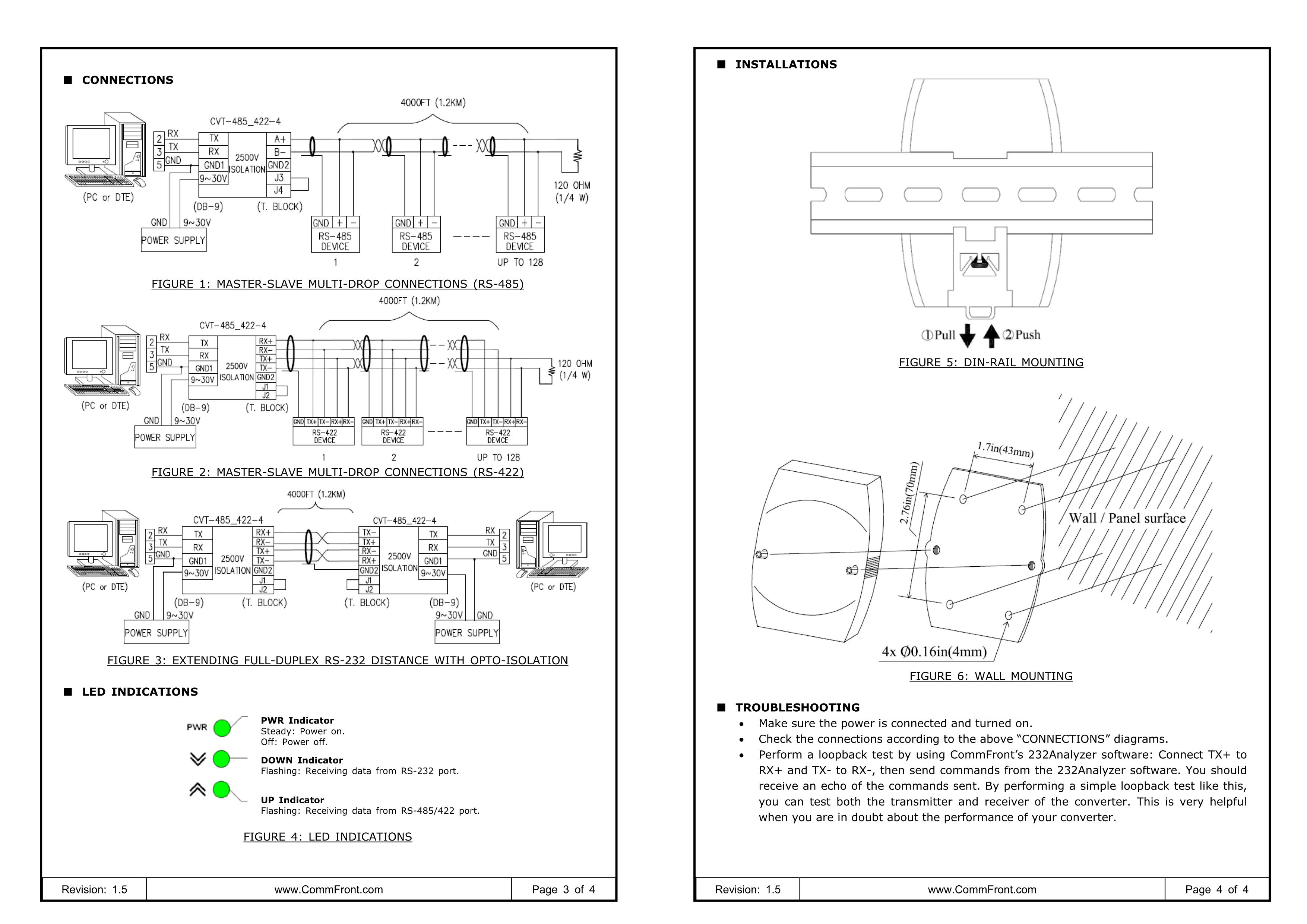 CVT-485_422-4 industrial Externally-Powered Opto-Isolated RS232 to RS485 / RS422 Converter incl. PS (optional Stecker/Plug CFR-PLUG-US-EU2=EUR 4,-)