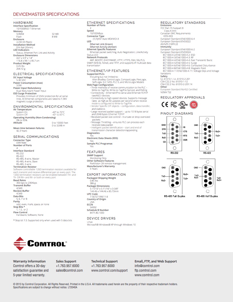 99611-8 DeviceMaster EIP-2304 4-Port industrial Ethernet gateway, Ethernet/IP