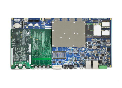 CCG007 COM Express Type 6 PMC/XMC Carrier - a full featured carrier includes 2 x PMC/XMC slots, 4 x MiniPCIe slots, dual gigabit Ethernet, HDMI, DisplayPort, DVI, LVDS, VGA, 8 USB ports (4xUSB 3.0), HD Audio, 3 x RS232, 2 RS485, 8 bits GPIO and +9V to +36V DC input. Designed to t in a 19" rack. RoHS Compliant.
