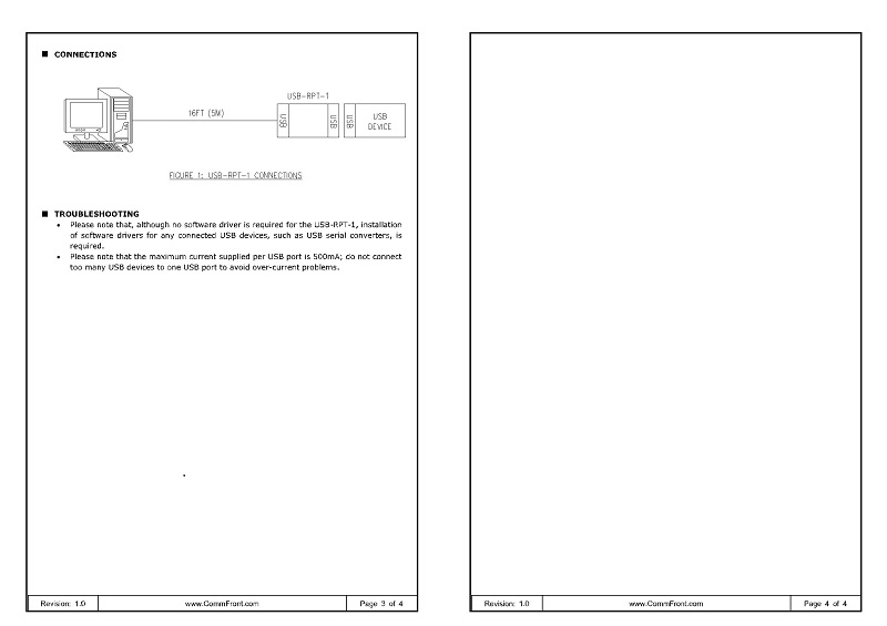 The USB-RPT-1 is an industrial-grade, active USB 2.0 extender cable that can be used to extend USB 2.0 / 1.1’s distance to 16ft (5m). This USB extender cable supports data rates up to 480Mbps (USB 2.0 specifications) and it requires no software drivers; the unit supports plug-and-play (hot-pluggable), thus making it an ideal solution for connecting USB devices that exceed standard distance limitations. Up to five (5) USB-RPT-1s can be cascaded to extend the USB 2.0 / 1.1’s distance to up to 80ft (25m). The USB-RPT-1 is ideal for a wide range of USB devices, such as USB printers, USB scanners, USB hard drives, USB audio devices, USB touch screens, USB cameras, and USB game controllers.
