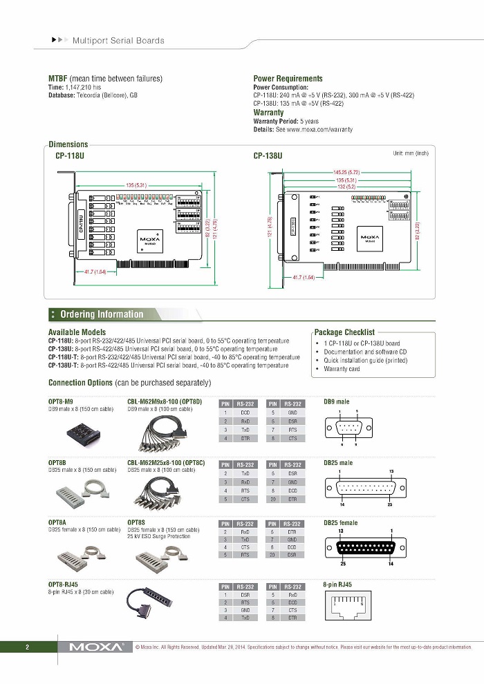 CP-118U - 8-port RS-232/422/485 Universal PCI Smart Serial Board