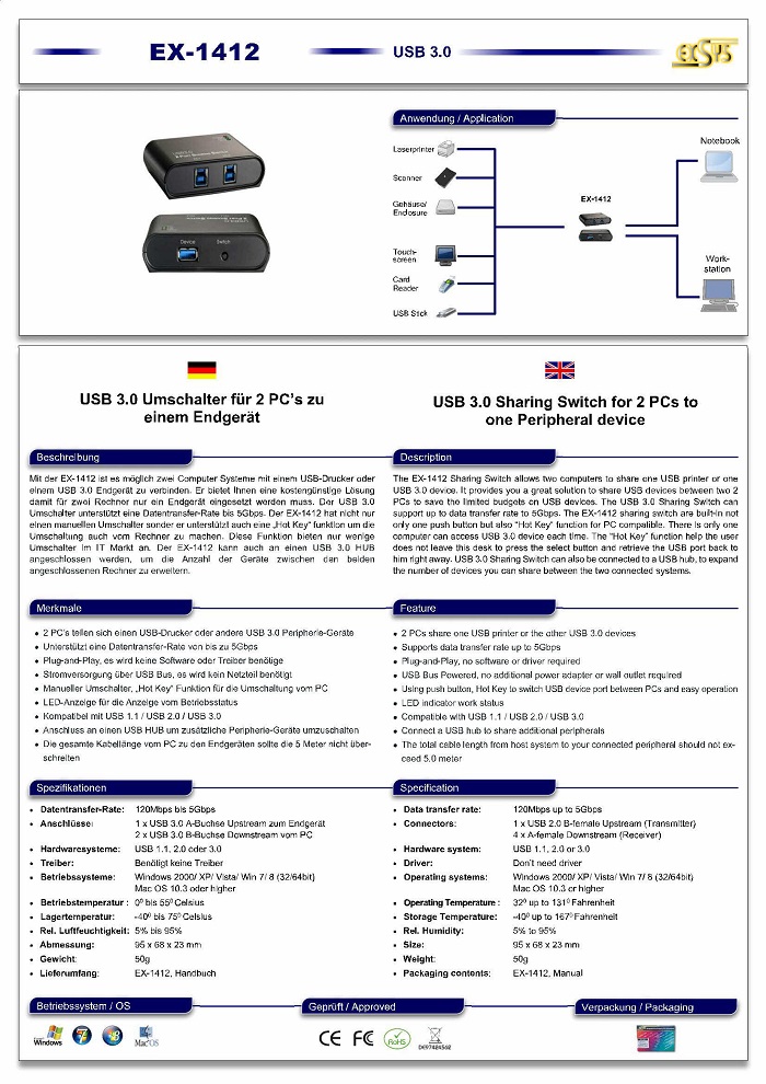 USB 3.0 Sharing Switch for 2 PCs to one Peripheral device