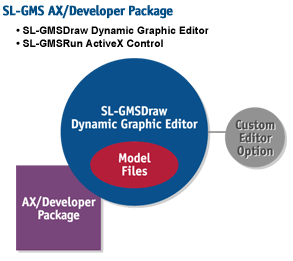 The SL-GMSDraw Dynamic Graphic Editor is included with the AX/Developer package. Within the editor, over 50 different dynamic behaviors can be associated with a given object. SL-GMSDraw allows users to specify not only the graphic elements to be displayed, but also the dynamic behavior driven by data variables in the application. Dynamic behaviors can be implemented and tested within the editor prior to linking it with the complete application. Once embedded in an application, the SL-GMSRun-Time ActiveX Control manages all the dynamic graphics and user interface functions.