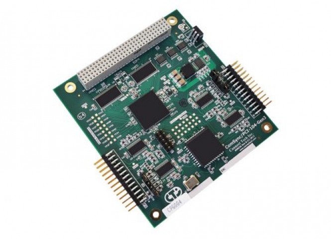 CPG004 ComSync/PCI-104 Gen3 features the Zilog ESCC 85230 allowing for an extended temperature operating range of -40 to +85 degrees C. Gen 3 offers DMA support and multiple electrical interfaces that are software selectable including RS-232, RS-422, RS-449, EIA-530, EIA-530/A, V.35 and X.21. RoHS Compliant